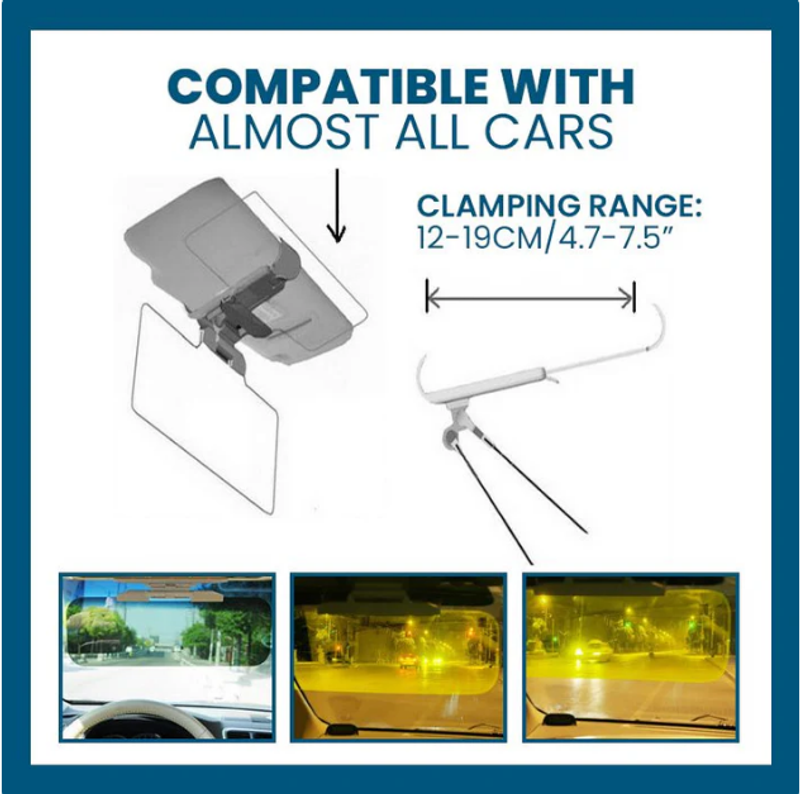 The 2 in 1 Anti-glare Filter filters out 90% of harmful rays, protecting your eyes day and night. Block out glare sunlight during the day and high beams at night to make driving safer.