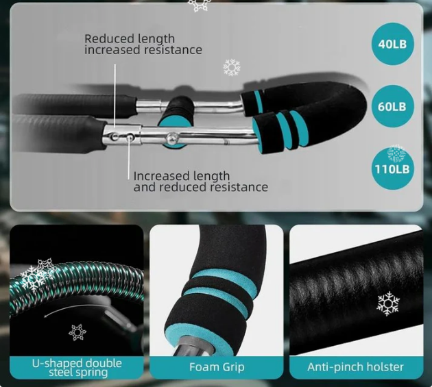 This arm trainer is a must-have for home workouts. It offers a portable solution for enhancing arm strength and chest workouts. The spring resistance ensures effective training sessions. Perfect for anyone looking to improve their arm strength at home.