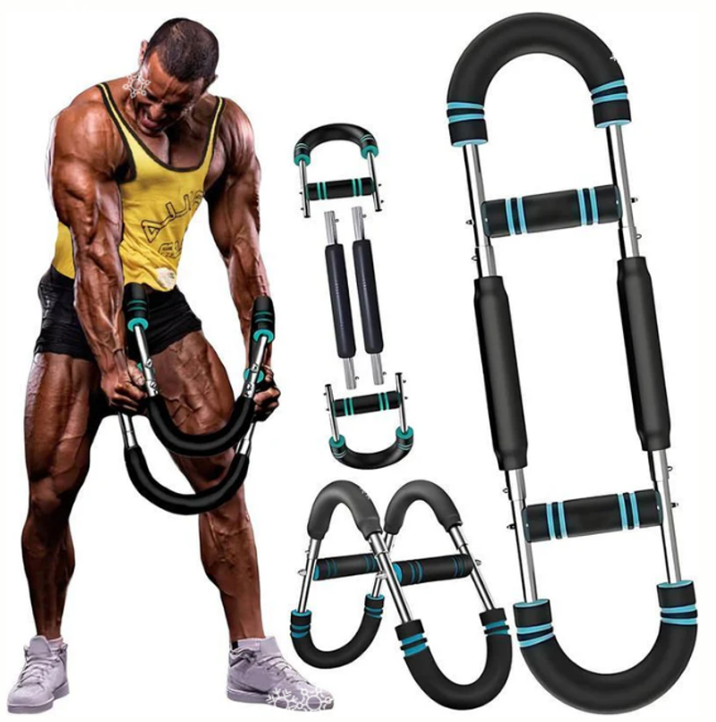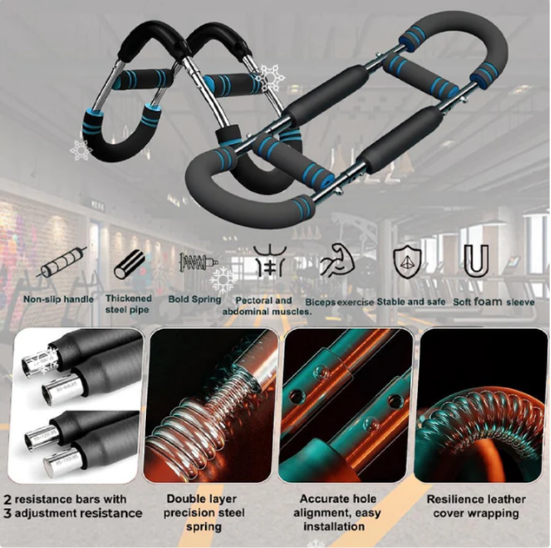 The Arm Trainer is a versatile chest workout equipment, adjustable from 60-110lb. Perfect for arm strength training, this portable power twister bar offers spring resistance. Ideal for home workouts, it enhances your training routine effortlessly.