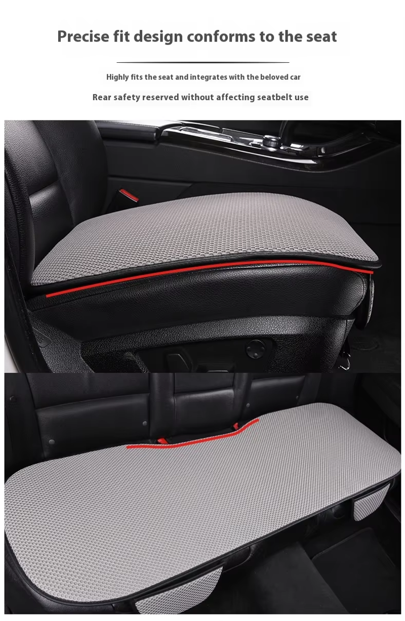 Breathable car seat covers made with Viscose filament and skid rubber, backed by non-slip silicone, and crafted from premium materials like imitation viscose filament & high resilience sponge for ultimate comfort during daily commutes and long trips.