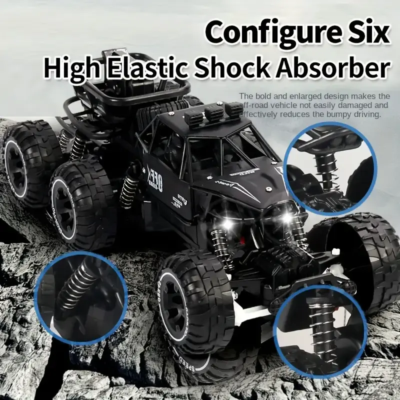 🚗This remote-controlled car is a fantastic gift for children. It features a four-wheel drive system and high-elasticity shock absorbers, allowing it to handle various terrains and maneuvers, from sandy surfaces and bumpy roads to stable control on tabletops. The military-grade metal frame and anti-drop alloy ensure its durability. The realistic engine sounds and LED headlights add to the immersive fun.