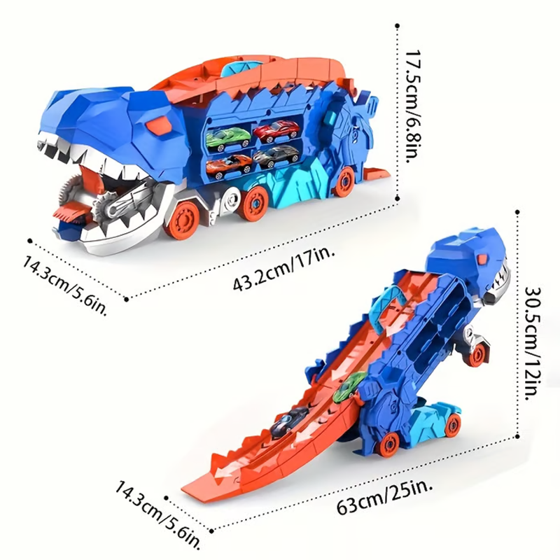 This dinosaur car carrier track truck is along with high quality die-cast alloy cars and a foldable track, gives your children novelty experience for leisure time playing and get-together with friends and family members. Racing anytime anywhere!