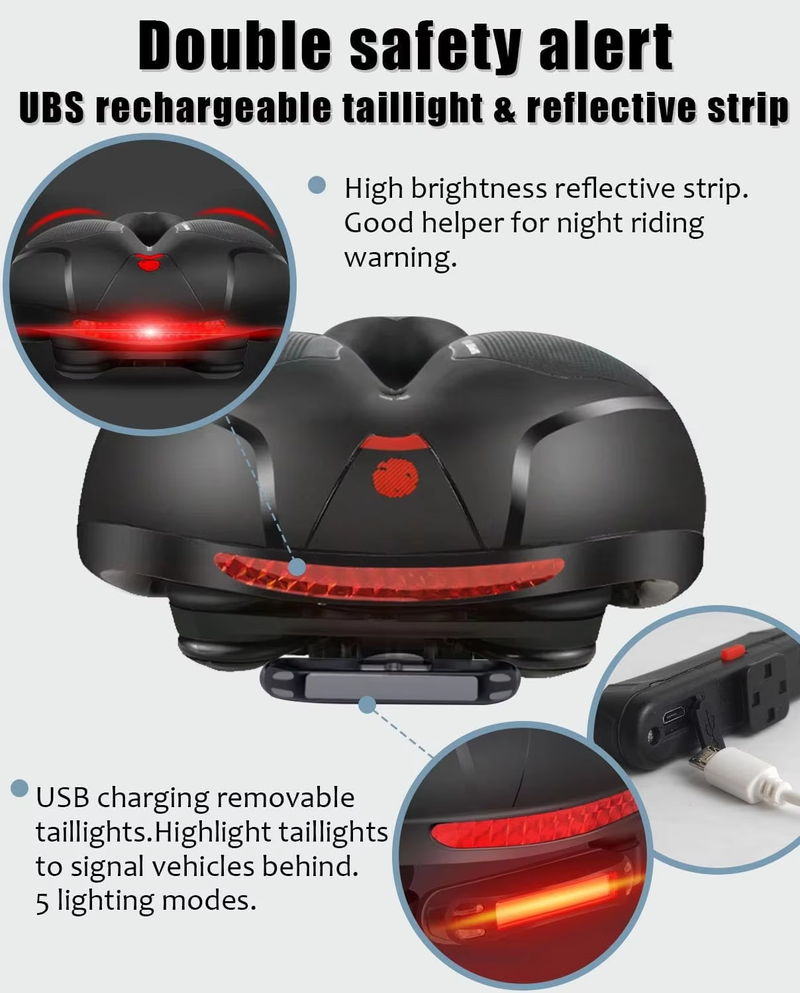 Hot Sell🔥🔥Extra-wide and comfortable bicycle saddle with taillight.