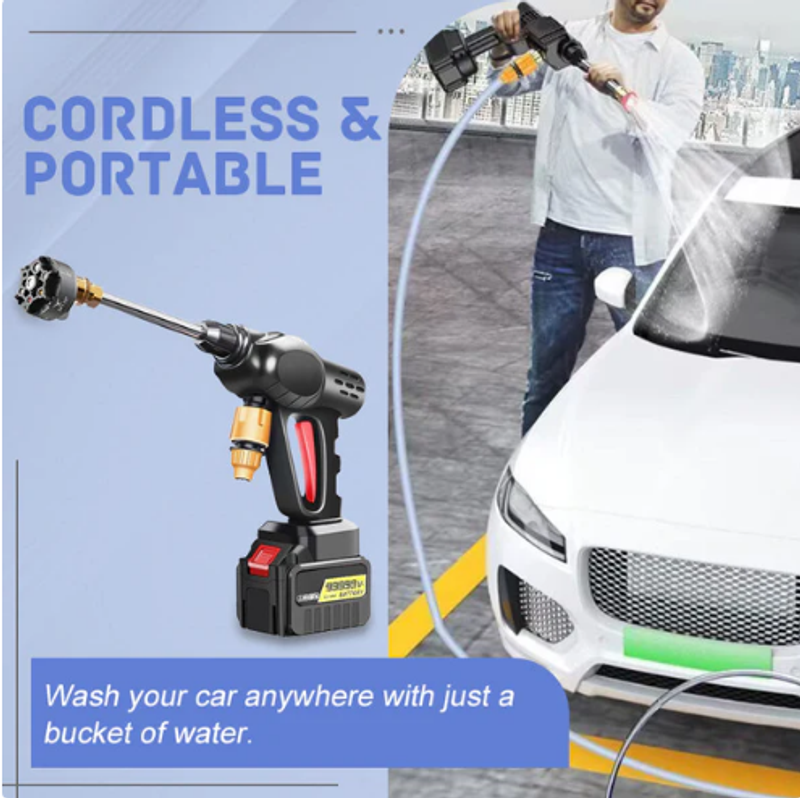 PORTABLE & CORDLESS DESIGN - Powered by a 24V lithium-ion battery, this cordless unit allows complete freedom of movement. Wash your car anywhere with just a bucket of water—no external water source required.