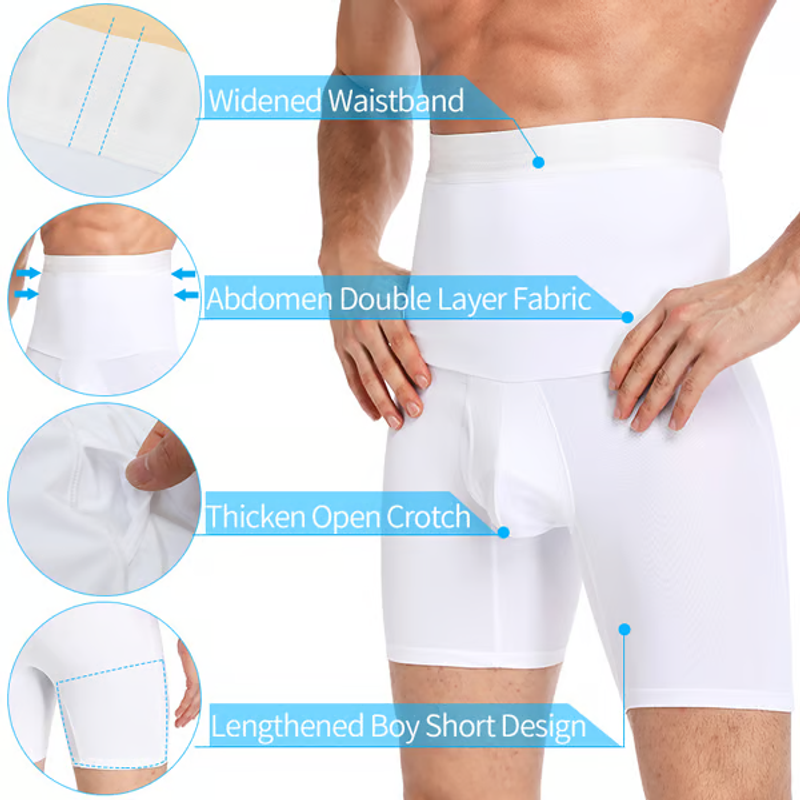 - Package includes: 2 x Men Tummy Control Shorts High Waist Abdomen Leg
