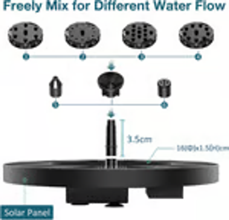6 Different Ways of Spraying Water: The bird bath fountain includes 6 spray nozzles, which allows you to easily choose different water fountain modes and add endless fun to your garden.