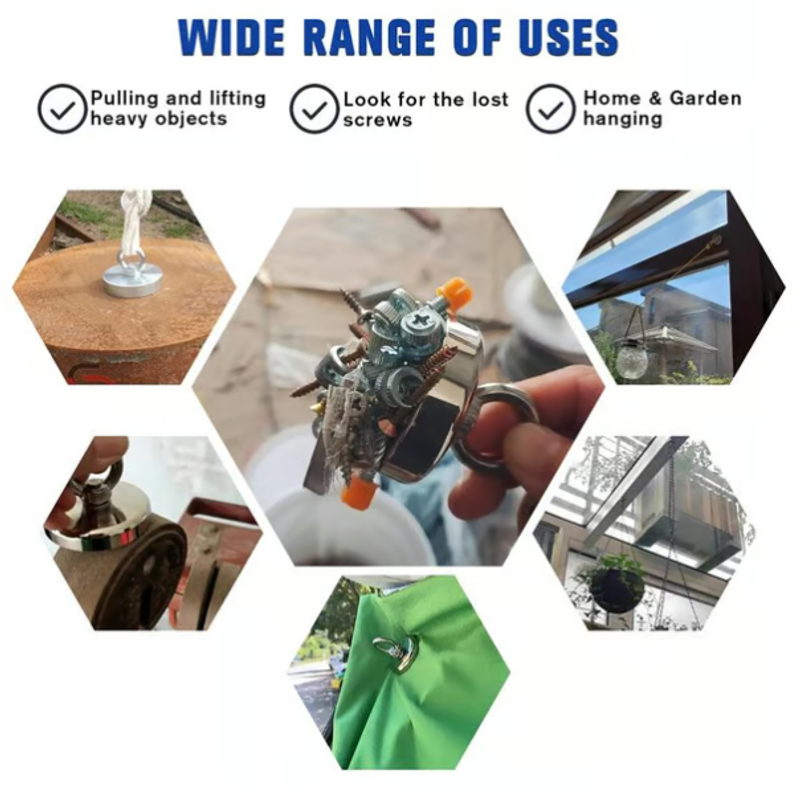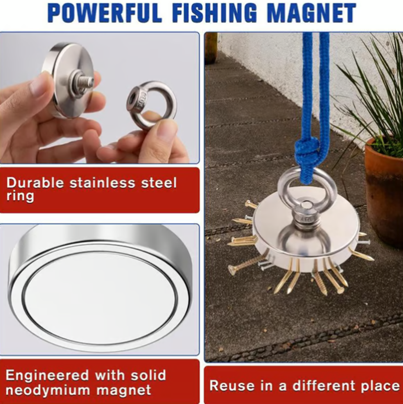 Ready to explore? This magnet is your ticket to “magnetic fishing” adventures. Drop it in lakes, rivers, or docks to hunt for sunken treasures — tools, antiques, you name it. But it’s not just for water! Use it in workshops to hang heavy gear, for outdoor camping hacks, or to organize your space. Versatile enough for any adventure. 🏕️