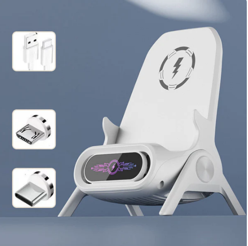 CREATIVE DESIGN - With its unique chair styling, this wireless charger supports both horizontal and vertical positions as a phone stand.